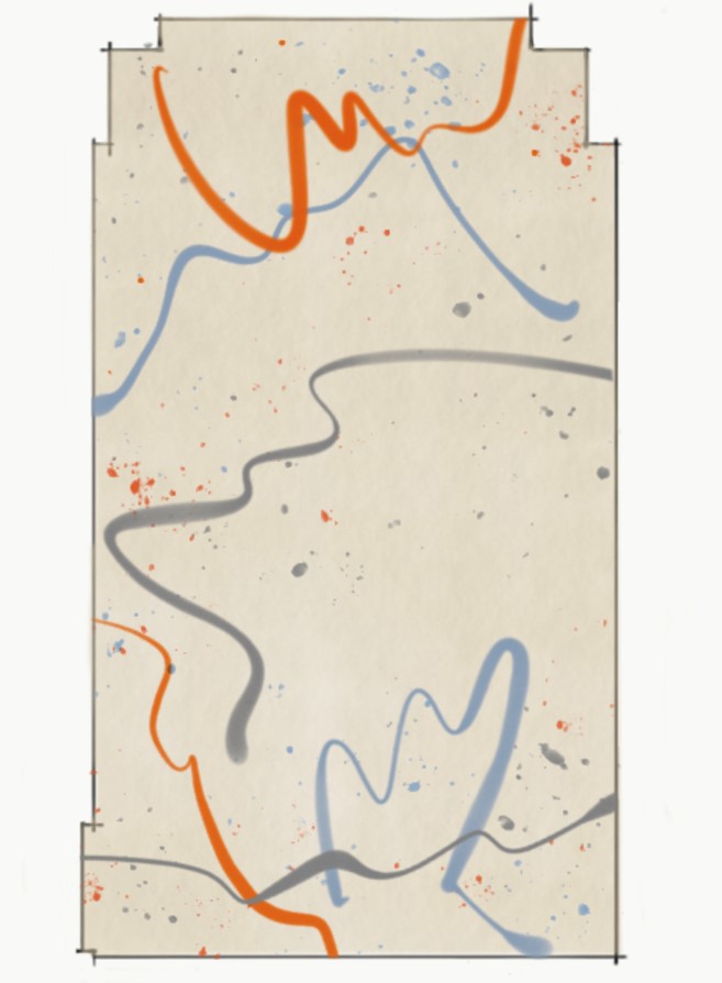 Large scale rhythmic graphics characterize this dynamic textured rug